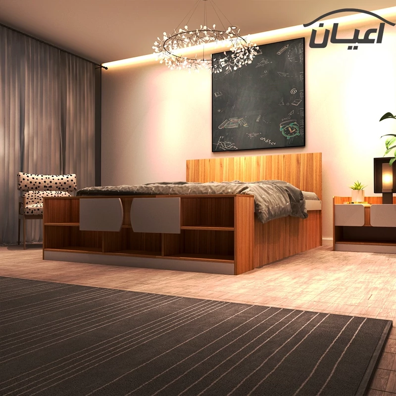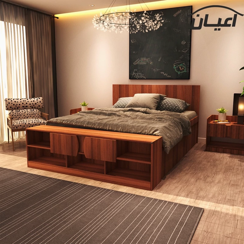 تخت خواب دونفره اعیان-جنس ملامینه .طراحی ساده و کاربردی-