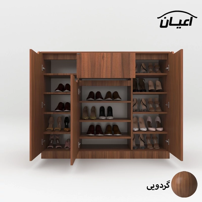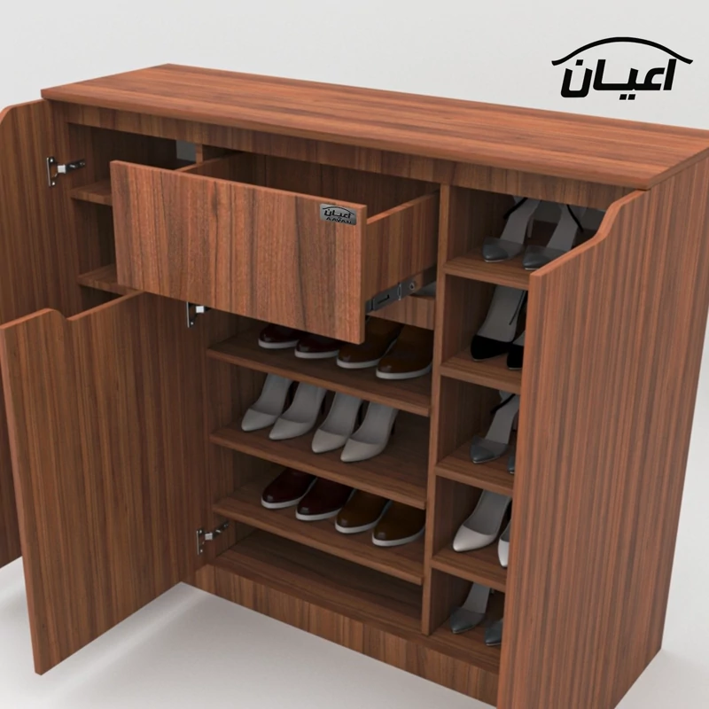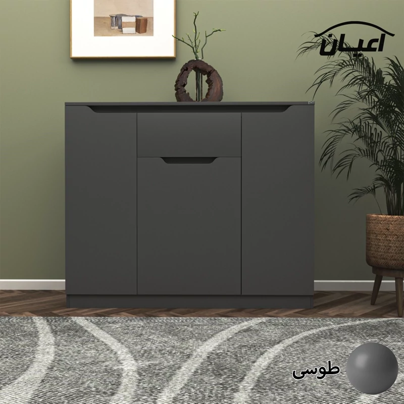 جاکفشی اعیان.جنس نئوپان ملامینه.دارای سه درب کمدی درب ها به صورت آرامبند.دارای یک کشو با ریل سه تکه.طراحی مدرن.ارسال در بسته بندی با برند و لوگو اعیان.